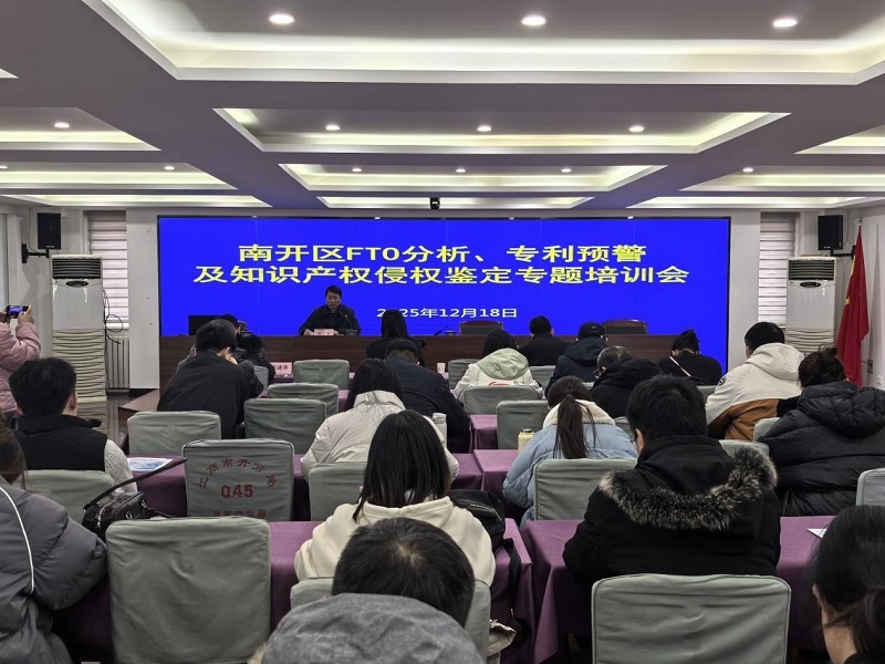 为深入贯彻落实国家创新驱动发展战略,提升区域企业知识产权风险防范与应对能力,助力企业系统掌握专利预警方法,增强核心竞争力,2025年12月18日,由天津市知识产权局指导,南开区知识产权局主办,天津市知识产权保护中心南开分中心、南开区知识产权保护协会、北京品源专利代理有限公司及天津品源知识产权运营管理有限公司共同承办的南开区“FTO分析、专利预警及知识产权侵权鉴定专题培训会”成功举办。区内30余家科技型企业的知识产权管理人员参加了培训。